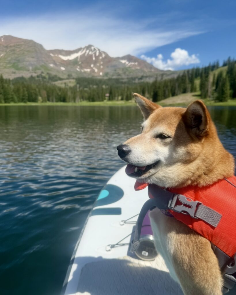 Yeah, this post is an excuse to share vacation pictures. Here’s Kona on my paddleboard in the middle of Lake Irwin.